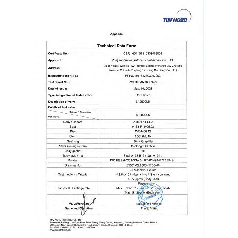 閘閥 微泄露證書 2