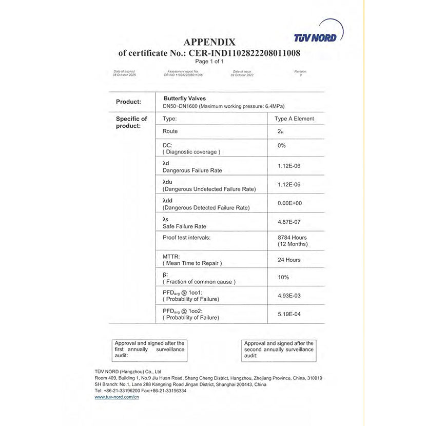 蝶閥 SIL證書 2