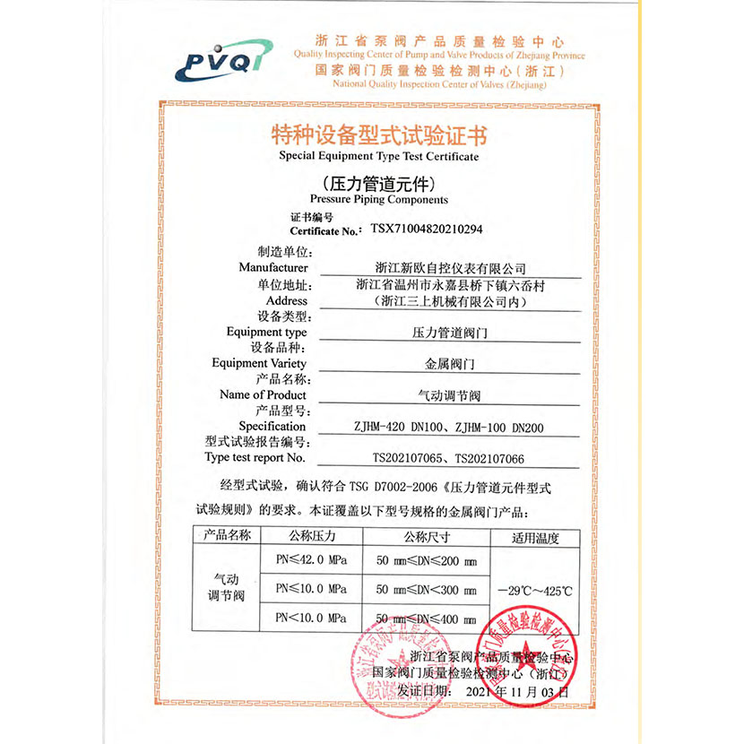 氣動調(diào)節(jié)閥 型式試驗(yàn)報(bào)告